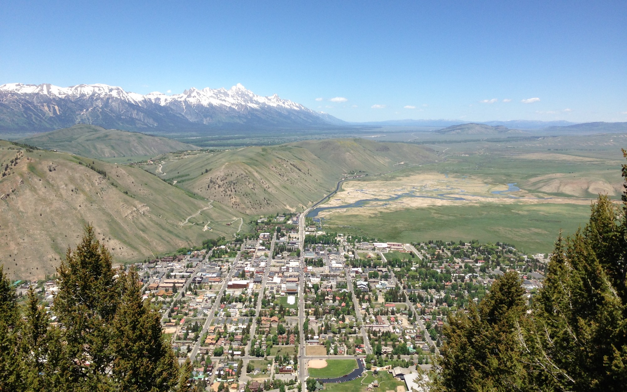 We joined many active locals and a few tourists as they zigzagged their way to the top. The beaten path was used for horse riding tours in addition to being open for public use. Once we made it to the top we were rewarded with a picture perfect view of the town. We relaxed on the ski patrol deck and enjoyed the unique perspective of the Grand Tetons. We also surveyed the town and pointed at what we wanted do next.