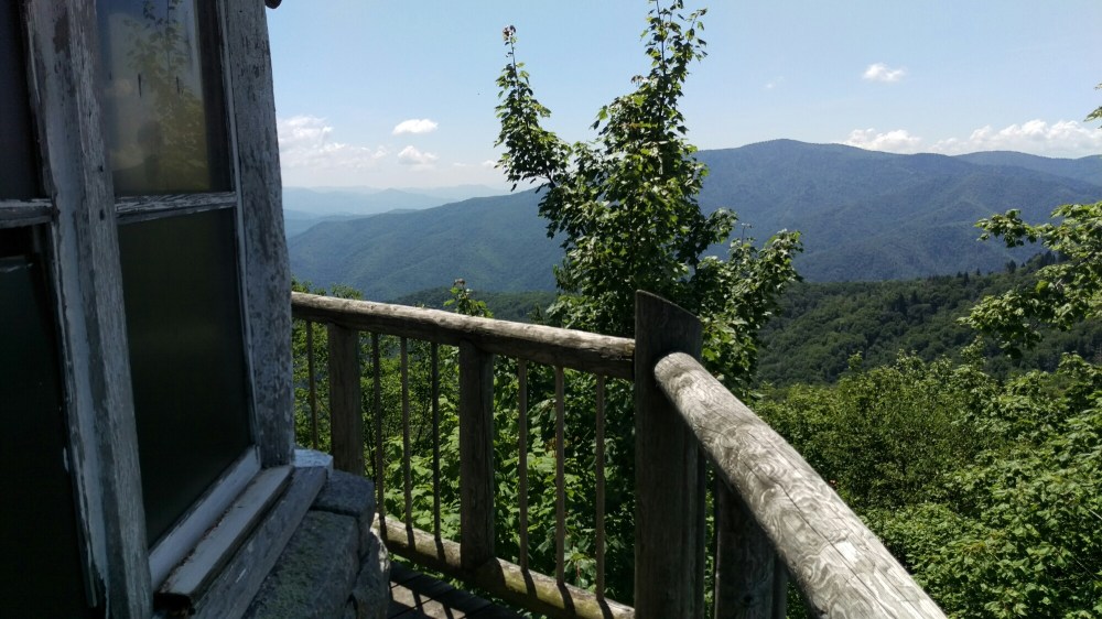 .6 miles off of the AT, we neared the summit of Mt. Camerer. We tossed our walking sticks ahead so that we could use our hands to help navigate the jagged rocks. Just over the top of the Mountain Laurel bushes peeked the roof of the old fire lookout — we pressed on towards it, all remnants of a trail have disappeared.